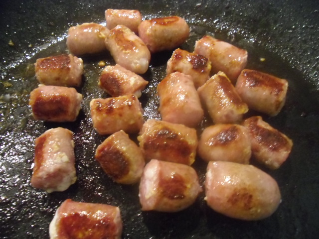 Brown the sausage, remove from the pan, and drain on paper towels.