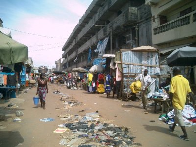 This is the Grand Marché (Big Market) on a Sunday when most of the vendors are closed. A majority of the streets in Togo are still dirt roads, the buildings stand precariously, and the average Togolese must toil day in and day out to eek out a living. They are very generous and kind people in spite of such difficult living conditions.