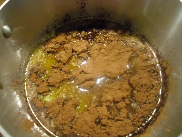 Melt the stick of butter over a medium-low heat. Add the cocoa and stir until blended with the butter.