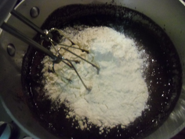Now you have brownie batter. I would eat it just like this if I weren’t afraid of salmonella.