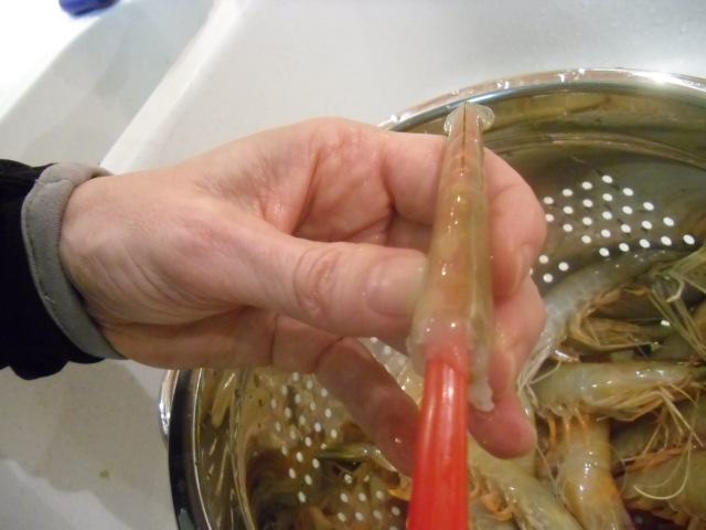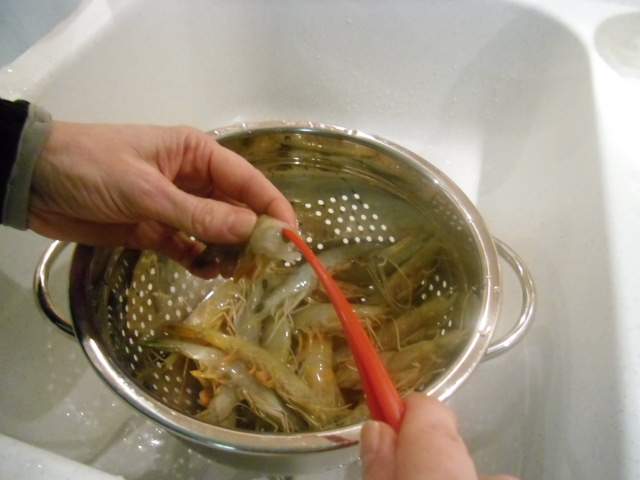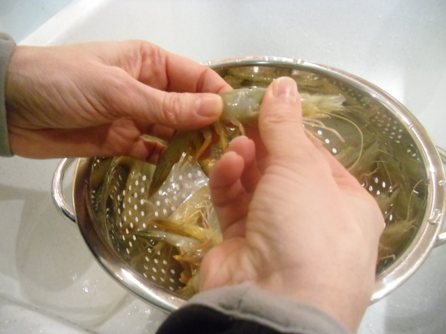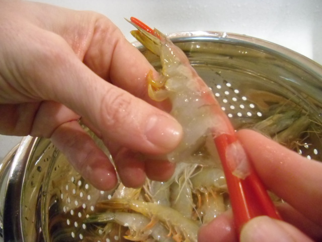 I found this thingamajig in the kitchen aisle at a grocery store. No, it’s not a medieval torture device – it’s a shrimp peeler and makes peeling shrimp a snap because it peels and deveins simultaneously. I’ll show you how it works.