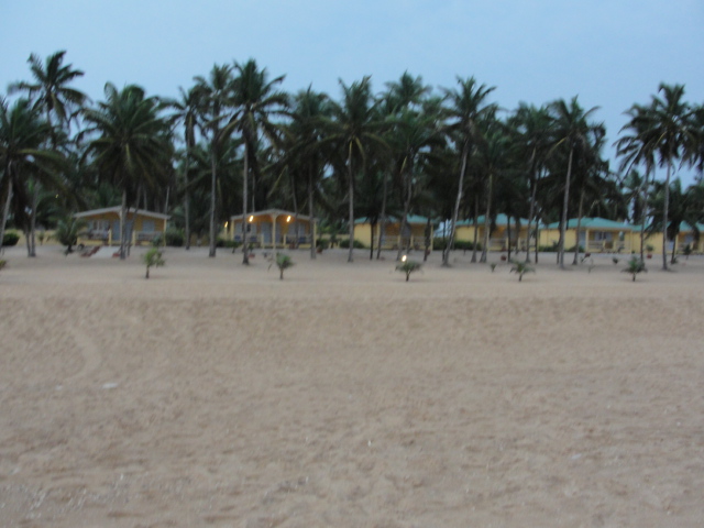 We turned down a sandy road to get to our bungalow on the beach. That’s not our bungalow, by the way. That’s a fisherman’s compound.