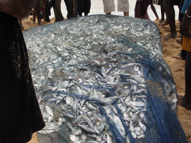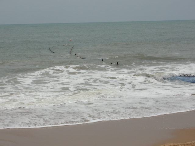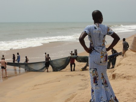While in Benin, Norm and I noticed a line of fishermen on the beach, carrying their cast net towards the water.