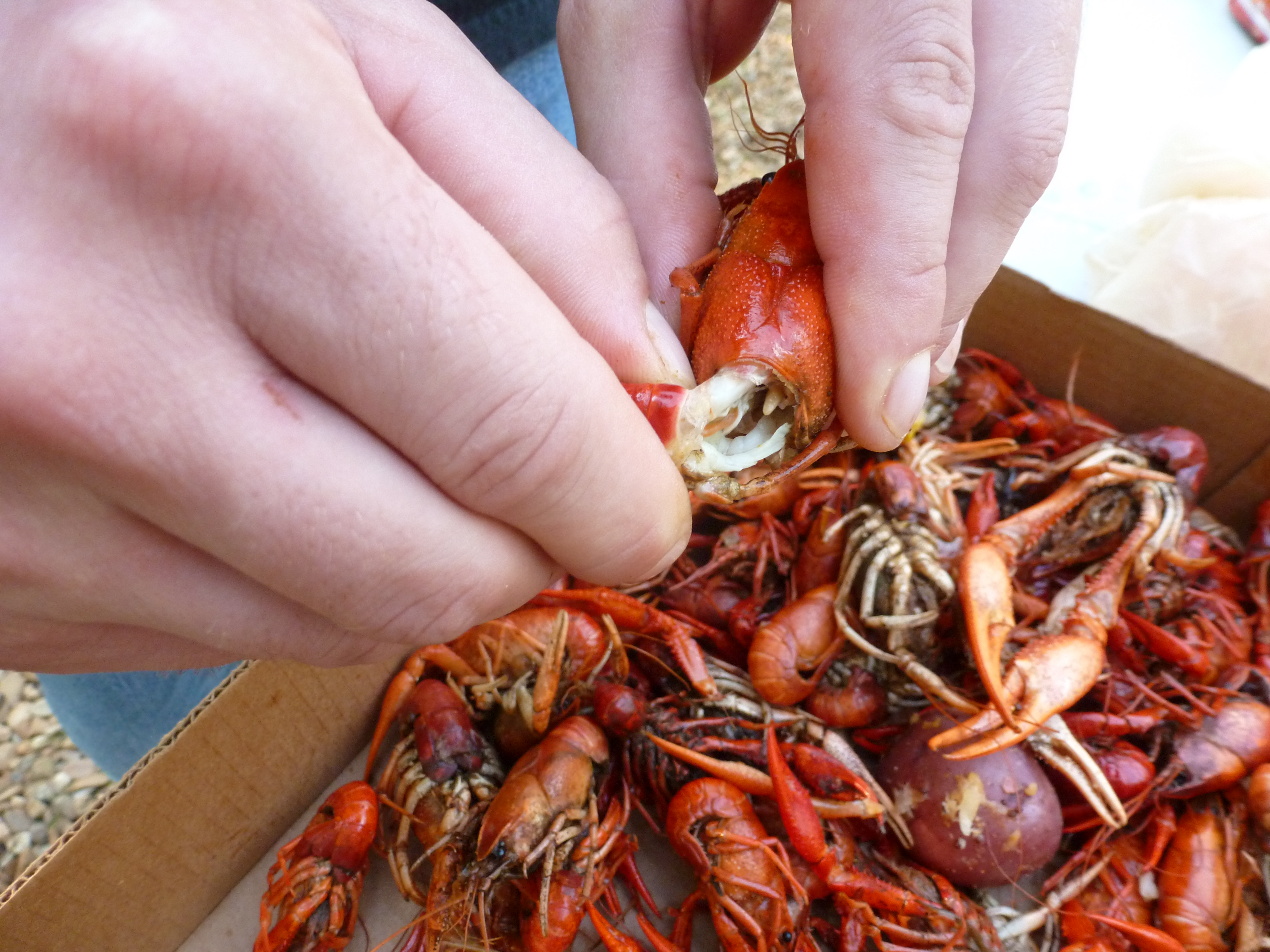 Here’s a demonstration on how to peel them, for you crawfish-eating novices: