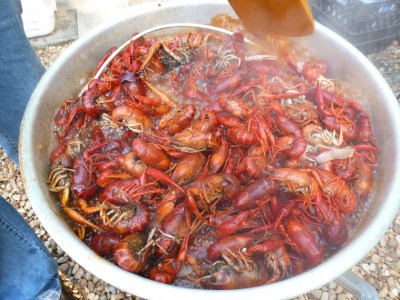 Now, while everyone else is chowing down, turn the fire back on and prepare the next batch. After the third batch, dump out the water and start over. And, at most Louisiana crawfish boils, we add more spice to the last batch – the one reserved just for adults.