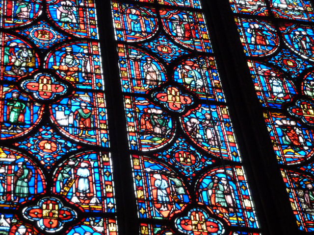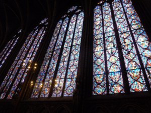 It happens to be our favorite church in France. It is small by comparison – not like the towering Gothic cathedrals littering Europe. No, The Holy Chapel is quietly hidden behind the walls of the Justice buildings. You wouldn’t even know she were there save by her steeple jutting into the sky.