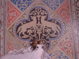 La Sainte-Chapelle was built in the mid-thirteenth century at the behest of Louis IX, also known as St. Louis. (New Orleanians know him as the namesake of our cathedral on Jackson Square). Louis IX was pretty cool, in the humble opinion of a pair of wool Traveling Socks. He was a Crusader in the 7th and 8th crusades, and he built his own personal chapel – La Sainte-Chapelle – to house relics, including the Crown of Thorns.