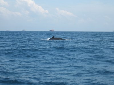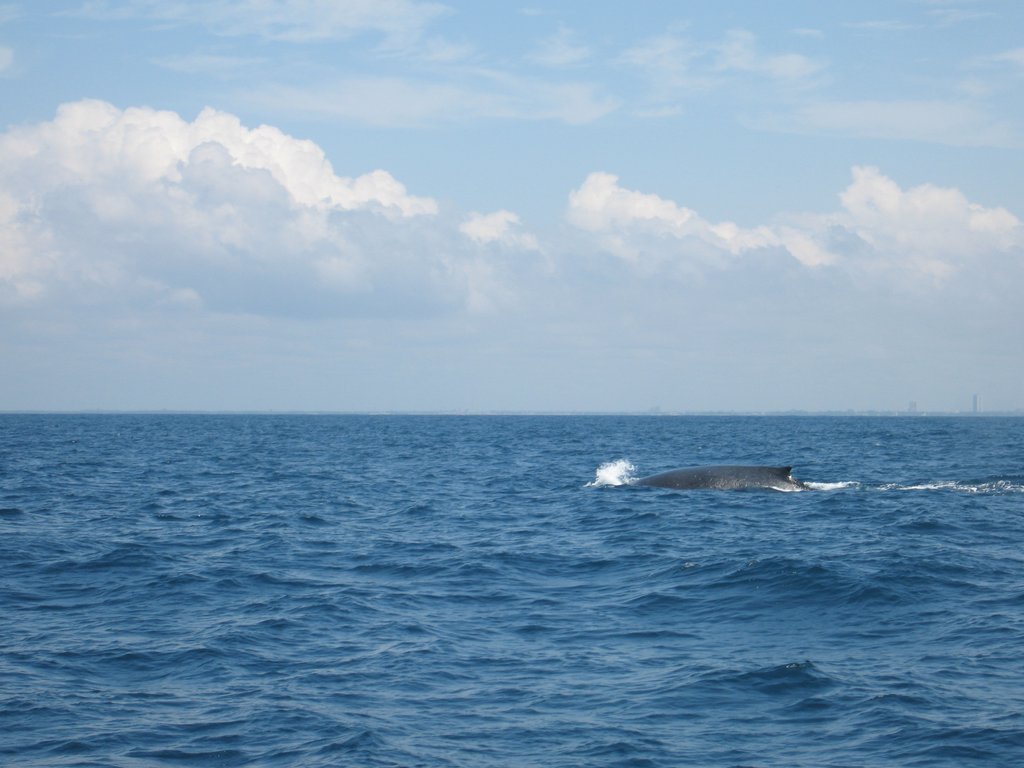 The skipper drove around the gulf for about thirty minutes looking for the whales.