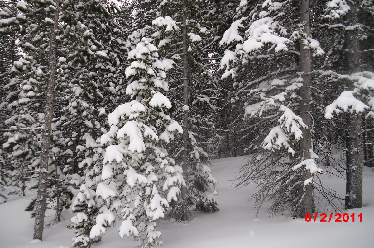 The snow was so deep that the powder came up to my knees.