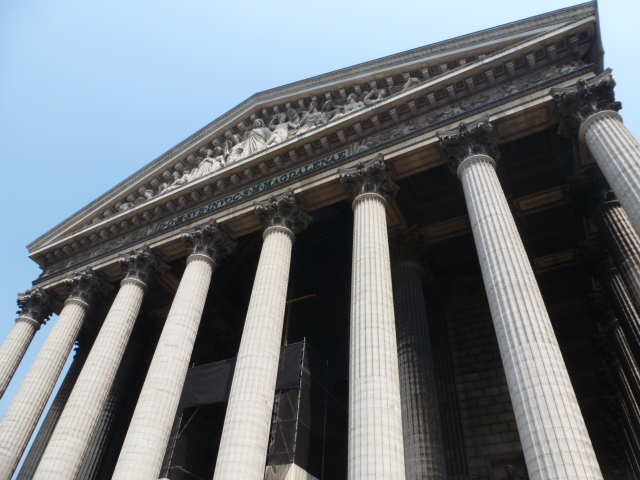 I love the church that Parisians call La Madeleine. It’s different. Just look at its façade: Greek columns line the perron that wraps around the entire perimeter of the church while the Last Judgment towers across the length of the pediment.
