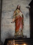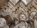 Take a close look at the gable above the rose window. The poor paysans of the Middle Ages never experienced such a view of these statues – so sad! But wait – there’s more! The pinnacle above the statue of Mary holding Infant Jesus is really a statue of the Father. No space left unadorned!