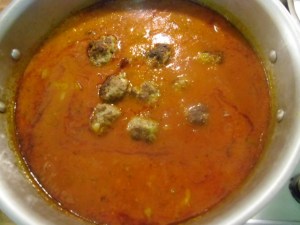 If you haven’t already done so, go ahead and prepare the meatballs first. (Click here for the recipe.)