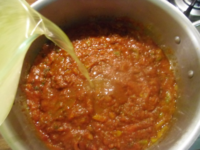 Add these seasonings to the sauce. Raise the heat and bring to a boil.