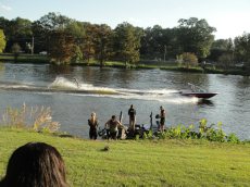 The leaves have found a way to notify us that it is autumn now, but the weather did not agree. A warm and sunny day it was on Bayou DeSiard at the edge of the University of Louisiana Monroe’s campus recently when Norm and I went to the water skiing team’s demonstration.