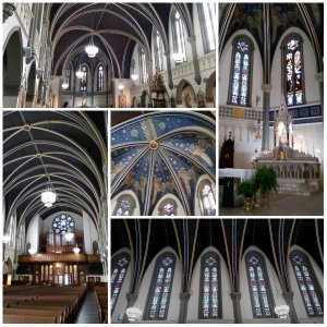 I was morphed back to France recently when Norm and I took a trip to Indianapolis. Our hotel was being renovated and the parking lot entrance was next-to-impossible to find. As we circled the perimeter looking for the ingress, we chanced upon a beauty of a church, one I was determined to find again as soon as I had the time.