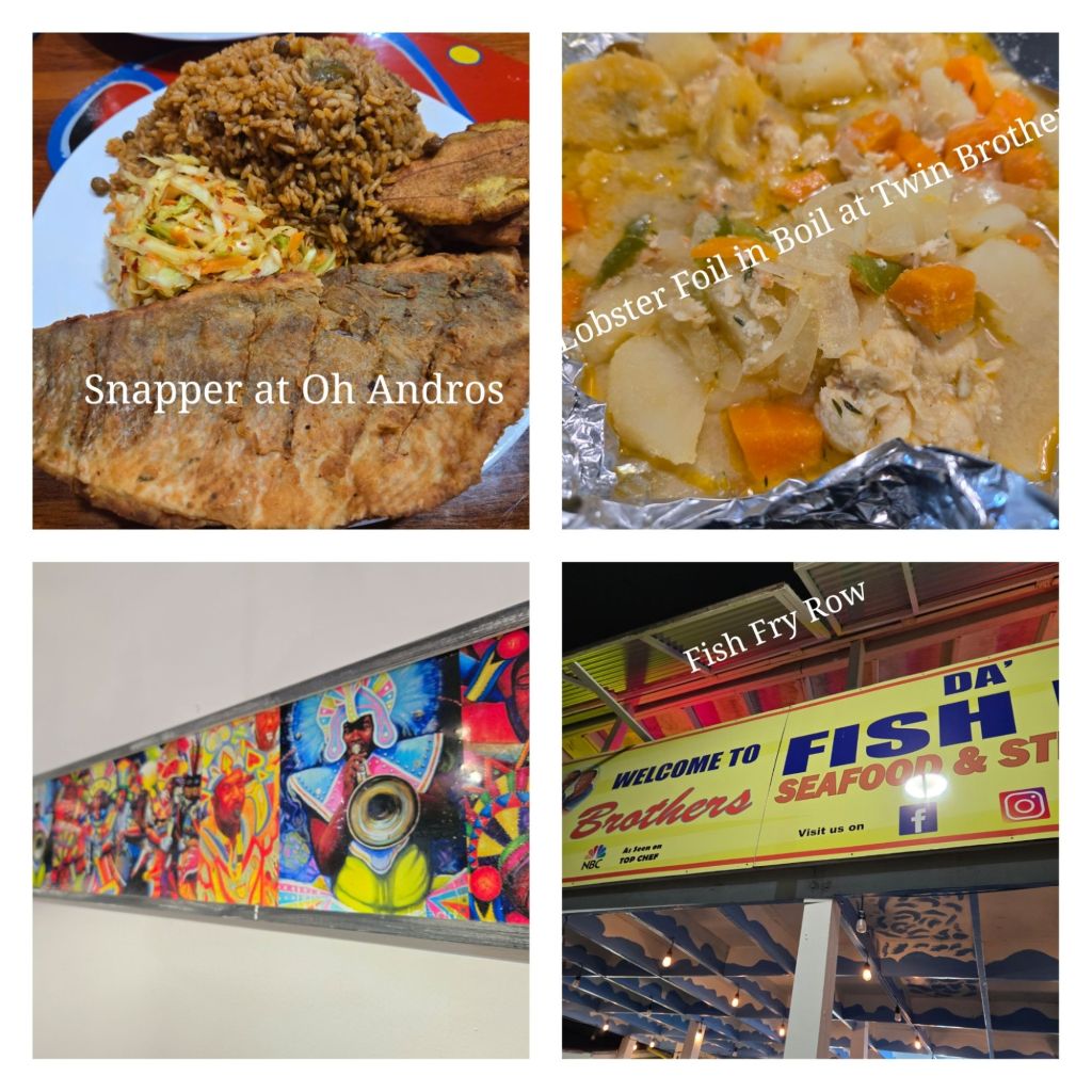 That first evening, we headed for the Fish Fry – two of Stacy Lyn’s favorite words – an area of town with a plethora of restaurants, souvenir shops, and tiki bars. Our taxi driver (no such thing as ride share in Nassau) recommended a local favorite called Oh Andros, and oh boy, how glad we were that he did, thank you very much. Stacy Lyn chose the snapper, peas and rice, and picklez (no, not a typographical error). All were vaguely familiar dishes to a Louisiana girl, but had a Caribbean flair. On the way back to the hotel, the next taxi driver affirmed Stacy Lyn’s suspicions – the fish was seasoned and marinated overnight which infused the fish with a tangy flavor making the need for sauce unnecessary. The peas and rice were reminiscent of Cajun jambalaya (spicy delicious), and the picklez (pronounced pickle-ease) was a delicious coleslaw slaw-like salad in a vinaigrette dressing. After a few suppers in Naussau, Stacy Lyn determined that this was her favorite meal. Yes, the conch fritters, lobster “boil in a foil” and sushi (yes, sushi) were top notch, but the fried snapper at Oh Andros was the finest local cuisine, for sure.