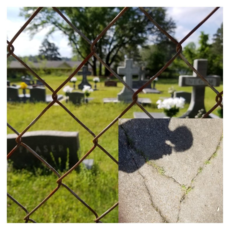 Around the back of the church repose the departed. I want to ask them what they know about all of this alone-ness we are experiencing. But they lie there silently, guarding their secrets, even from the only human likeness that I see – my shadow.